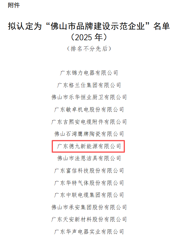 Recently, the Foshan Institute of Quality and Standardization announced the list of enterprises to be recognized as Model Enterprises for Brand Building in Foshan, and Dejiu Group has been successfully selected as one of the awardees. This honor is not only a high recognition of Dejiu’s brand strength, but also a full affirmation of its long-term commitment to quality-oriented and innovation-driven development.